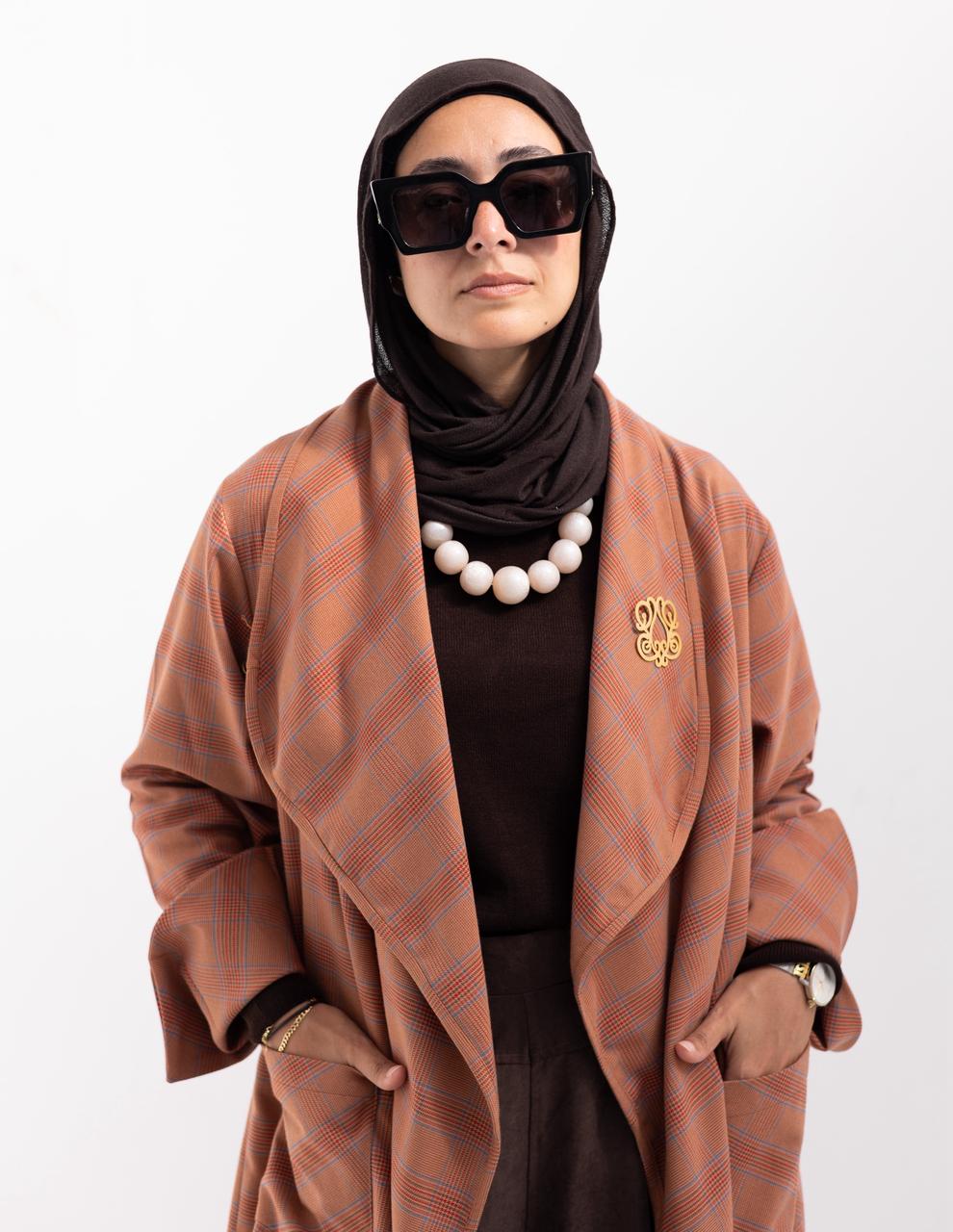 Elegant woolen checked cardigan