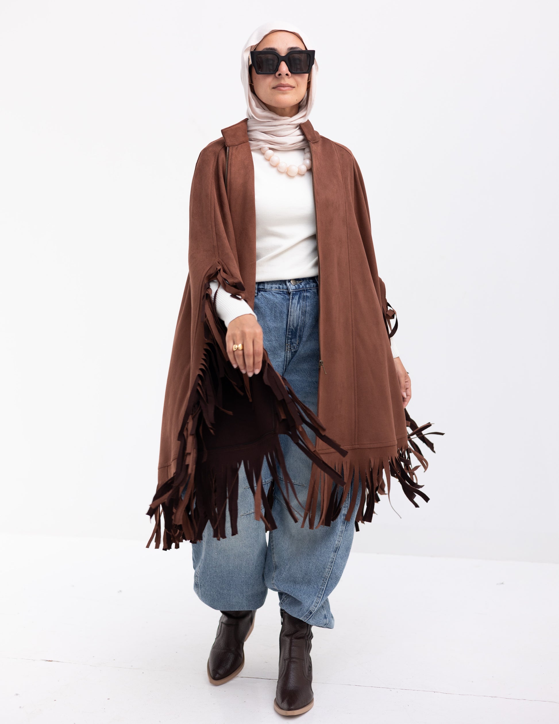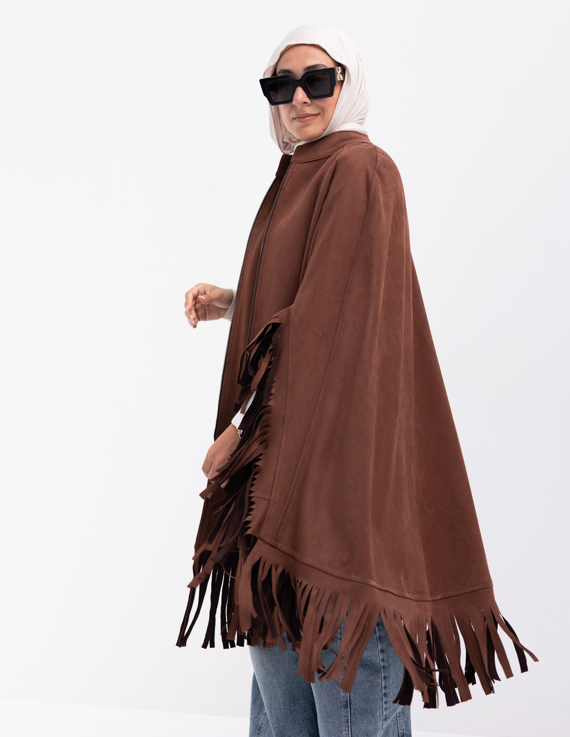 Suede poncho in Brown
