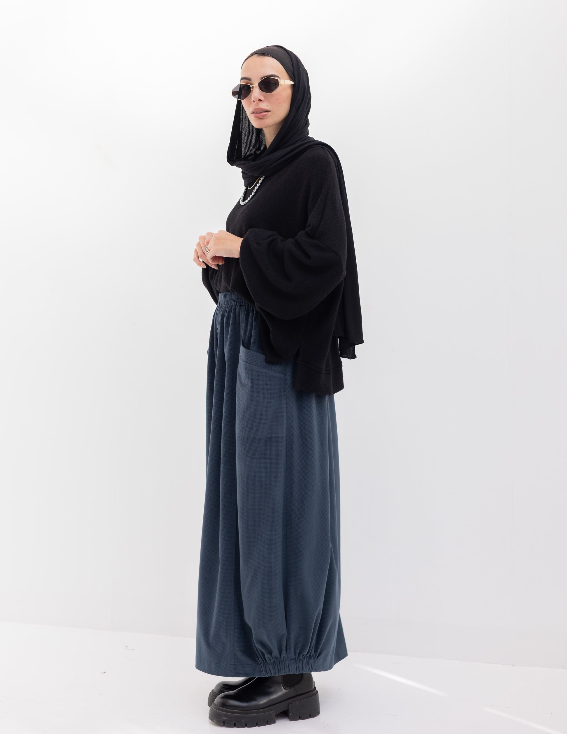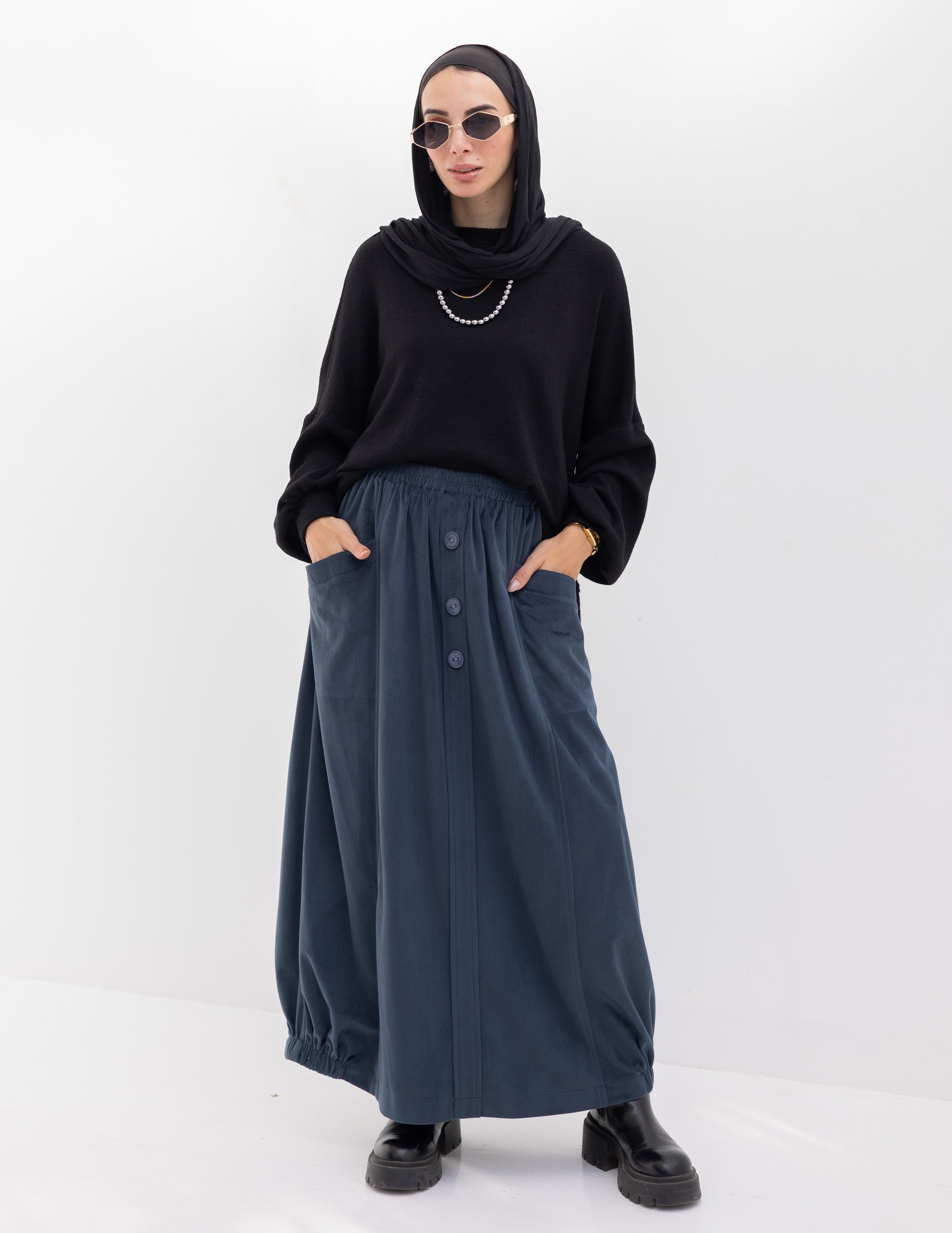Velvet skirt with pockets in Navy